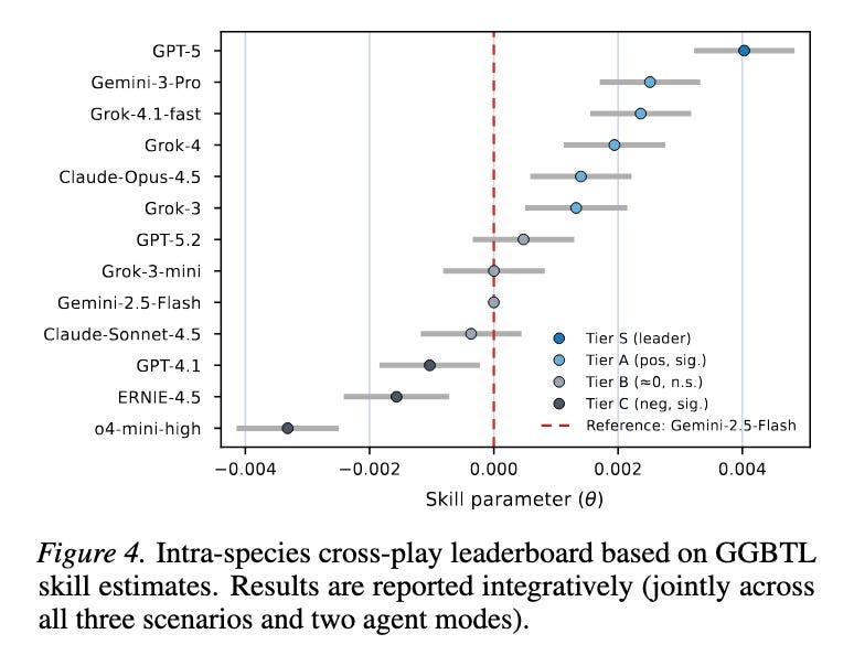 • GGBTL (Gaussian–Generalized Bradley–Terry–Luce), a statistically grounded ranking model for continuous negotiation payoffs that produces leaderboards with principled confidence intervals and corrects for experimental asymmetries.