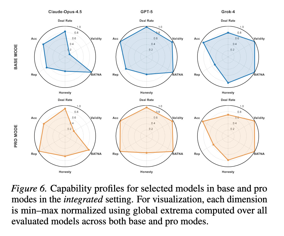 • Behavioral diagnostics beyond deal outcomes—deception, computational accuracy, instruction compliance, and perceived reputation—revealing trade-offs that outcome-only benchmarks can conceal.